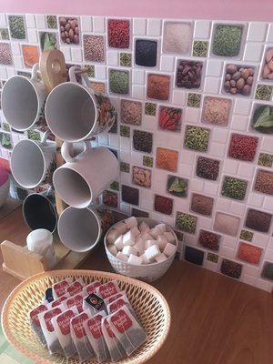 На общей кухне для постояльцев имеется холодильник, электрический чайник, обеденный стол и стулья, а также микроволновая печь.