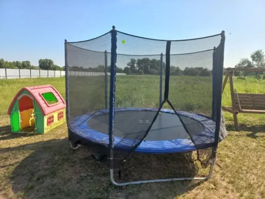 На территории базы отдыха имеются уютные беседки, качели, мангальная зона, собственный бассейн, батут и футбольное поле. Для самых маленьких гостей есть детская площадка.