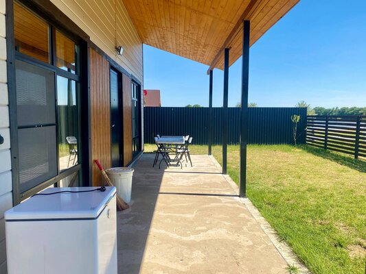 Панорамные окна обеспечивают потрясающие виды на реку и благоустроенный внутренний дворик. Ночью из окон домика можно любоваться бескрайним звездным небом.