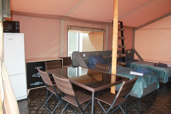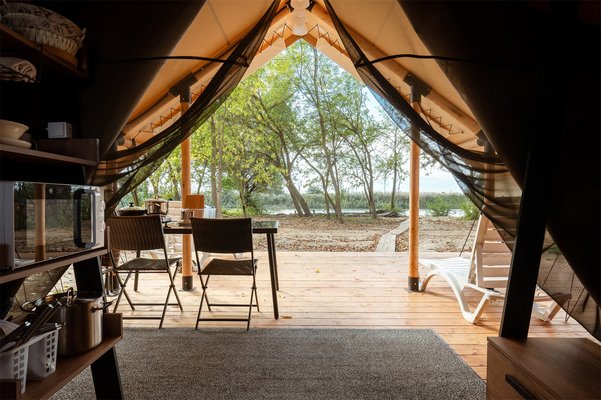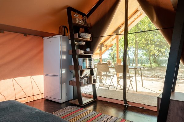 К вашим услугам 13 уютных сафари-тентов и 5 роскошных двухэтажных домиков, оборудованных всем необходимым: санузлом, кухонным уголком и собственным выходом к реке с зоной для рыбалки. Насладитесь великолепным видом на реку с вашей личной террасы.