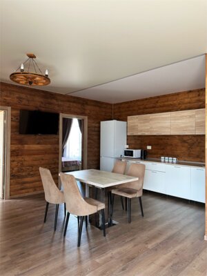 Насладитесь вкусной едой в нашем кафе, где комплексное питание входит в стоимость некоторых наших пакетов. Вы также можете воспользоваться холодильником, чайником и посудой в каждом номере. В домиках дополнительно имеется микроволновая печь.