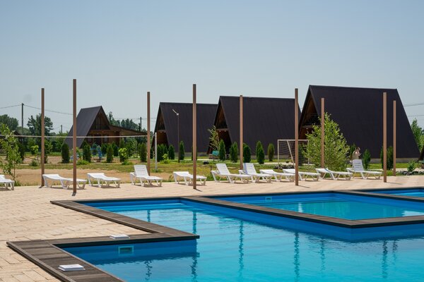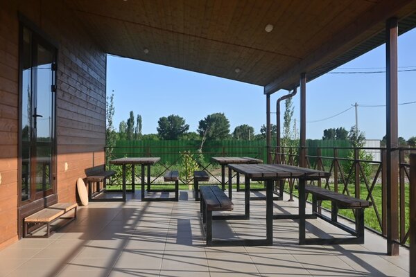 Сердце территории — живописный открытый бассейн с удобными шезлонгами, приглашающий к освежающим водным процедурам в жаркий день. Вдоль реки уютно расположились беседки, дарящие прохладу и идеальные для неспешного отдыха. А для настоящих гурманов и любителей готовки на свежем воздухе — оборудованные мангальные зоны, где каждое блюдо заиграет особыми красками под аккомпанемент природы.