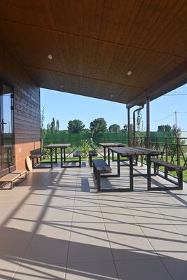 Просторная VIP-беседка, оборудованная сплит-системой, холодильником, микроволновой печью и удобной кухонной зоной — идеальное место для комфортного отдыха. Уютный балкон открывает живописный вид на реку, а рядом расположена мангальная зона для приготовления вкуснейших блюд на свежем воздухе.
