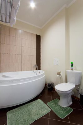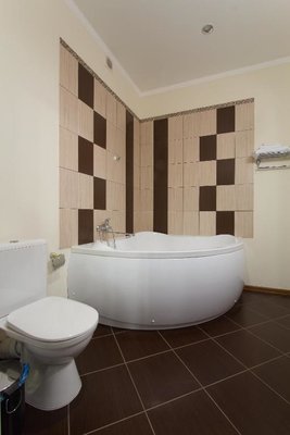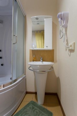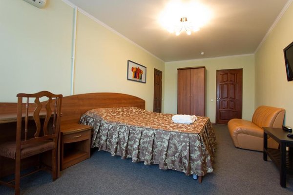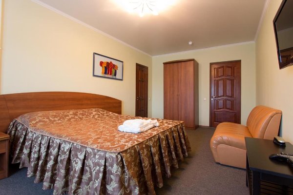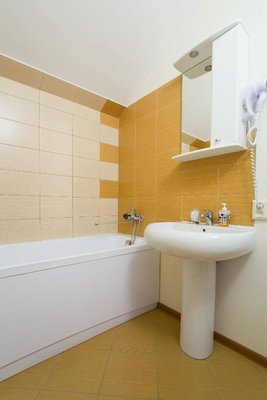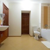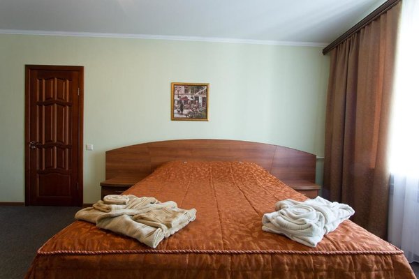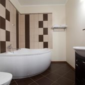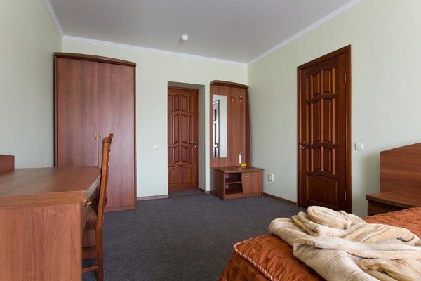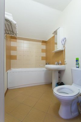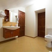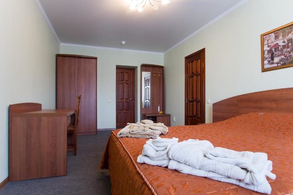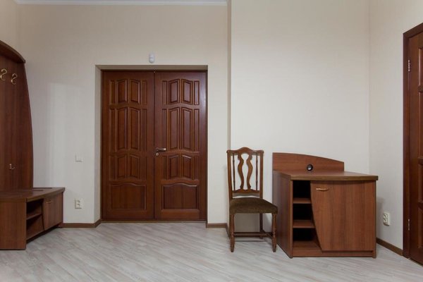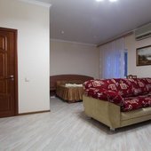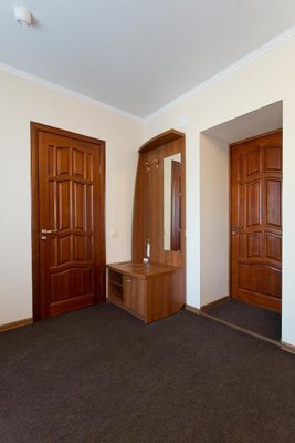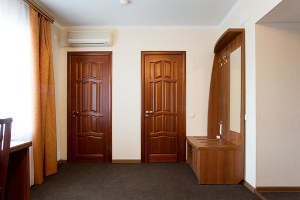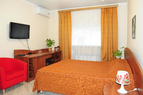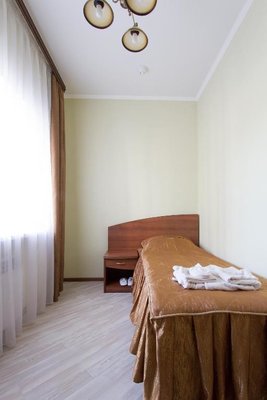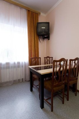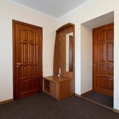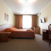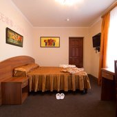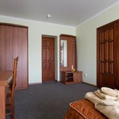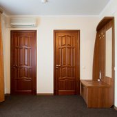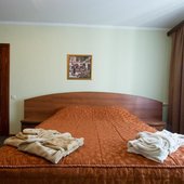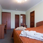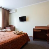Интерьер номеров выполнен в едином стиле и теплой цветовой гамме. В каждом из них установлена необходимая мебель и техника.