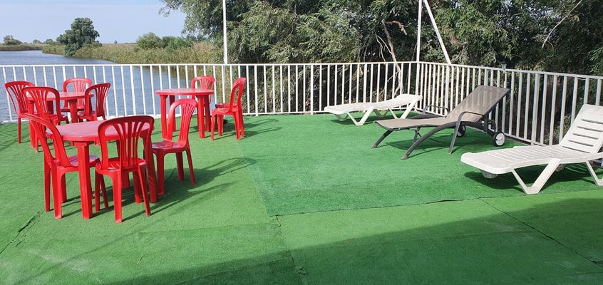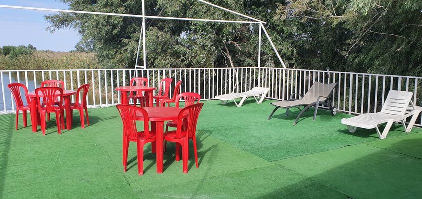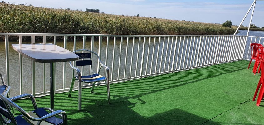 Ждет вас уютная 2-х этажная плавгостиница с 6 номерами на 14 человек на первом этаже, а также ресторан с вкусным трехразовым питанием на втором этаже. Доступны места на берегу с мангальной зоной для отдыха. Чтобы сделать рыбалку еще более комфортной, вас будут сопровождать опытные егеря на отличных катерах.