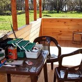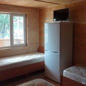 Более 20 км по бездорожью от трассы до базы. Старая разваливающаяся мебель, нет ТВ, нет радио.