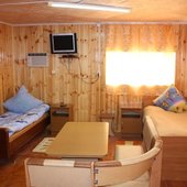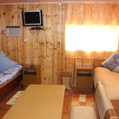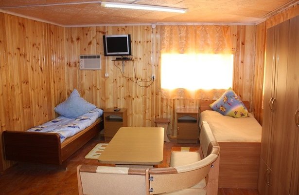 Размещение предложено в дома или палатки. Вне зависимости от выбора, администрация обеспечит гостей всем необходимым для проживания, а также снастями и лодкой. Количество туристов на турбазе ограничено, что создает уединенность и уют. Палаточный городок предназначен для самых изощренных любителей рыбалки. Здесь можно прочувствовать всю дикую природу, а также по-настоящему сменить обстановку. Палатки для туристов могут располагаться абсолютно в любом месте на территории базы.