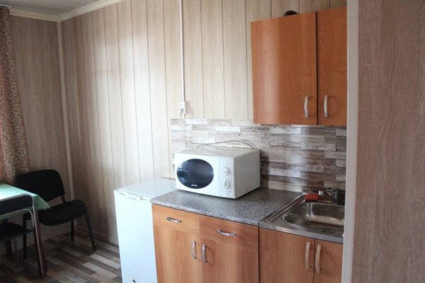 Для самостоятельного приготовления пищи имеется небольшая кухня. Также можно воспользоваться мангалом, грилем или коптильней, чтобы приготовить рыбу, мясо или овощи.
