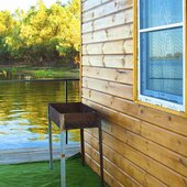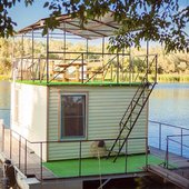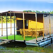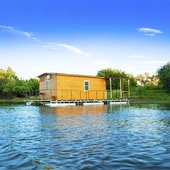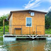 Уникальность базы отдыха Рыбная Поляна заключается в том, что HouseBoat (домик на воде) не привязан к берегу и может перемещаться по воде, к определенному месту, где паромщик швартует его к берегу. Домик можно отбуксировать в красивое место, где вы отдохнете от городской суеты и насладитесь нетронутой дикой природой, а так же где много рыбы.
