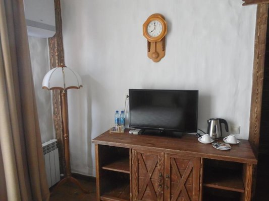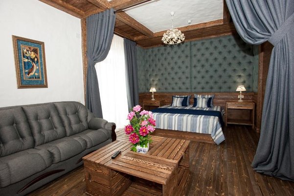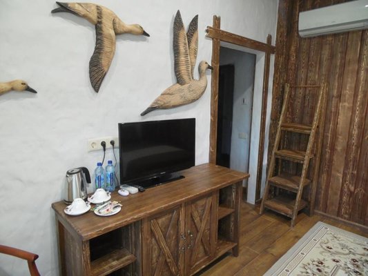 В стоимость входит: халат, банное полотенце, простыня, тапочки. Имеется просторная комната отдыха с большим столом и мягкими диванами, TV.