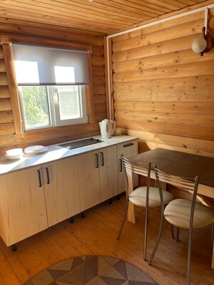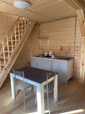 Каждый гостевой дом оснащен кухонной зоной со всеми необходимыми для приготовления пищи принадлежностями и бытовой техникой (холодильник, электрическая плита, микроволновка, электрический чайник, посуда).