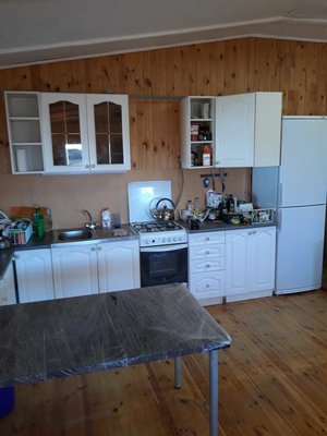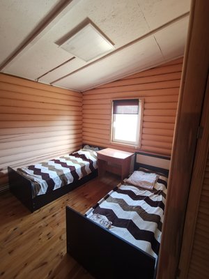 На ваш выбор предлагается новый одноэтажный рубленный дом общей площадью 100 квадратных метров. В доме есть 4 двухместных номера размером по 12 квадратных метров каждый с душем и туалетом. Также в доме есть зал-студия, площадью 33 квадратных метра, с кухней, телевизором и холодильником. Кроме того, в вашем распоряжении собственная лагуна с причальной зоной напротив дома.