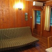 К вашим услугам комфортабельный отель с очень просторными номерами и ванными комнатами, все номера и выполнены из натурального дерева, порадуют даже самого привередливого посетителя, недаром среди посетителей встречаются многие известные персоны.