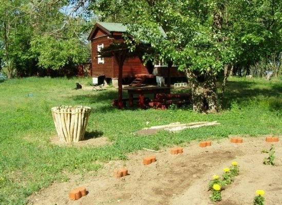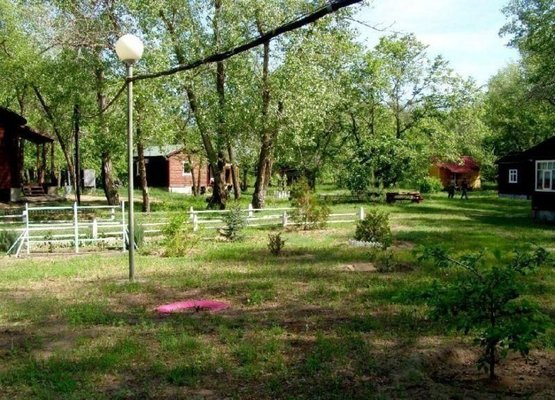 На территории расположены: русская баня, беседки, оборудована детская площадка, бетонный пандус для спуска лодок и катеров.