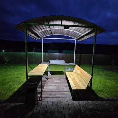 Мангальная зона укомплектована мангалом, решёткой-гриль и шампурами. Уголь и розжиг, пожалуйста, возьмите с собой.