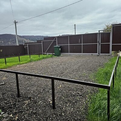Парковка на территории рассчитана на 2 машины, также можно безопасно оставлять машины перед воротами.