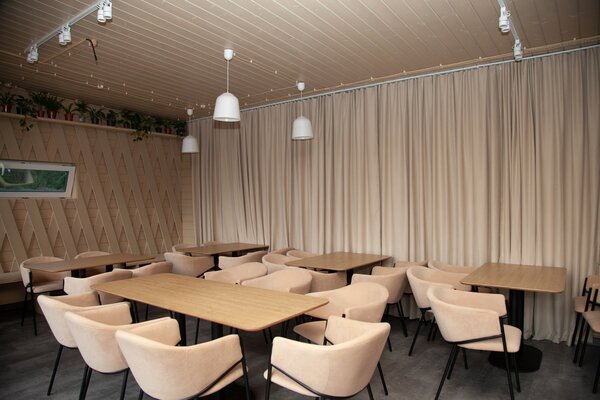 Банкетный зал оборудован кондиционером, гардеробной зоной, телевизором со SmartTV, колонками, холодильником, посудомоечной машиной. Стоимость аренды рассчитывается индивидуально, исходя из ваших потребностей.