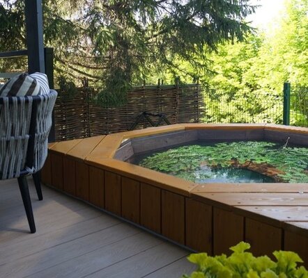 Каркасный бассейн с подогревом у каждого дома. Входит в стоимость дома.