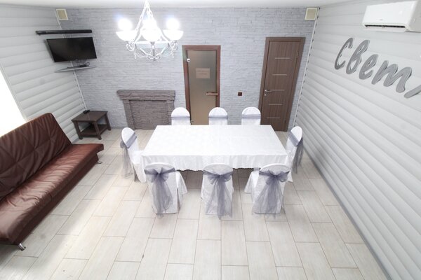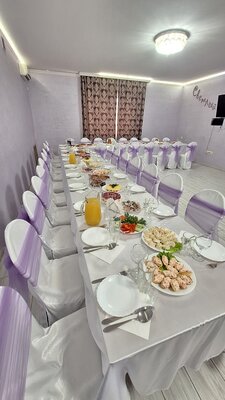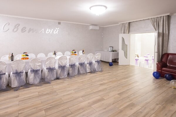 Проводятся любые мероприятия: свадьбы, юбилеи, выпускные, корпоративы, дни рождения, организуются банкеты. Любое торжество оставит только яркие эмоции и приятные воспоминания. Для украшения зала имеется разнообразное праздничное оформление в различных стилях.