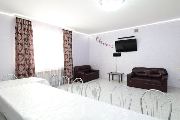 Банкетный зал «Светлый» площадью 100 кв.м и вместимостью до 70 персон.