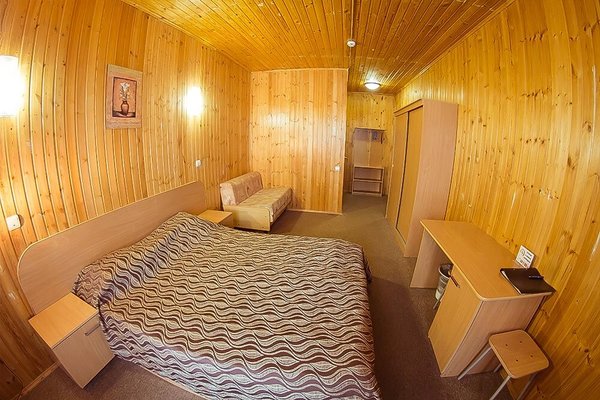 В трехстах метрах от отеля расположилась уютная баня на дровах. Внутри вас ждет комната отдыха с комфортным диваном, теплыми полами и всем необходимым для приятного времяпрепровождения: холодильник, чайник и посуда. Здесь также есть санузел и помывочное отделение с душем и обливным ведром «Водопад», что добавит ярких ощущений.