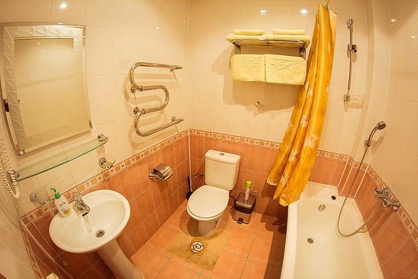 Всего в 50 метрах от отеля «Эдельвейс» расположилась уютная баня, работающая на газовом топливе. Парилка плавно переходит в помывочное отделение, где установлены тазики.