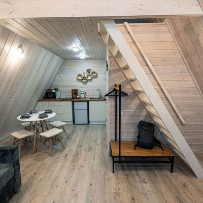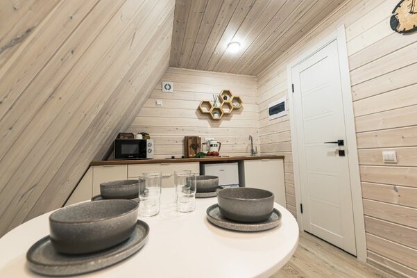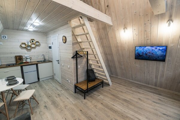 Глэмпинг «Соты» предлагает возможность отдохнуть в уютном коттедже, расположенном в живописном сосновом лесу.
