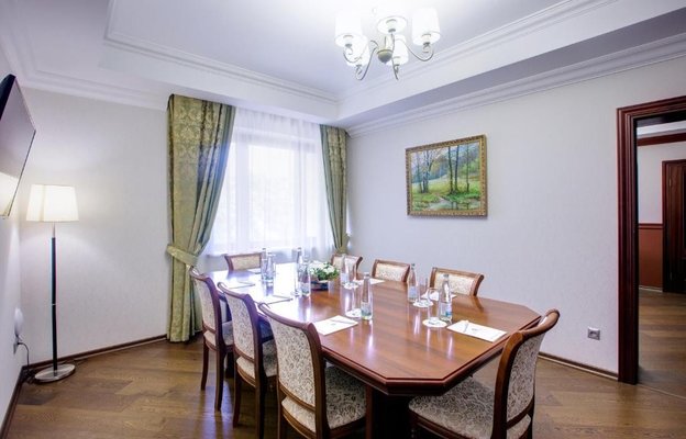 «Президент» также предоставляет широкие возможности для организации деловых мероприятий любого формата. К услугам гостей и корпоративных клиентов несколько современных конференц-залов, включая самый просторный, рассчитанный на 500 участников, а также уютные переговорные комнаты вместимостью от 12 до 50 человек. Все залы оснащены передовой мультимедийной техникой и качественной звуковой аппаратурой, гарантируя успешное проведение встреч, презентаций и конференций.