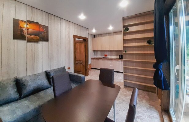 «Катрина» — это круглогодичный комплекс, предлагающий размещение в комфортабельных домиках формата А-фрейм: «Тропики», «Корабль», «Мозаика», а также в уютных «Близнецах». Каждый дом рассчитан на комфортное проживание до 5 человек, с возможностью установки дополнительного места. К вашим услугам: уютные спальные зоны (двуспальные кровати, раскладной диван, кресло-кровать), телевизор и кондиционер. Полностью оборудованная кухня (плита, микроволновая печь, холодильник, чайник, посуда) позволит готовить любимые блюда. В каждом домике предусмотрен совмещенный санузел с душем, феном и туалетными принадлежностями.