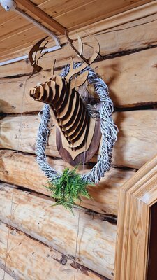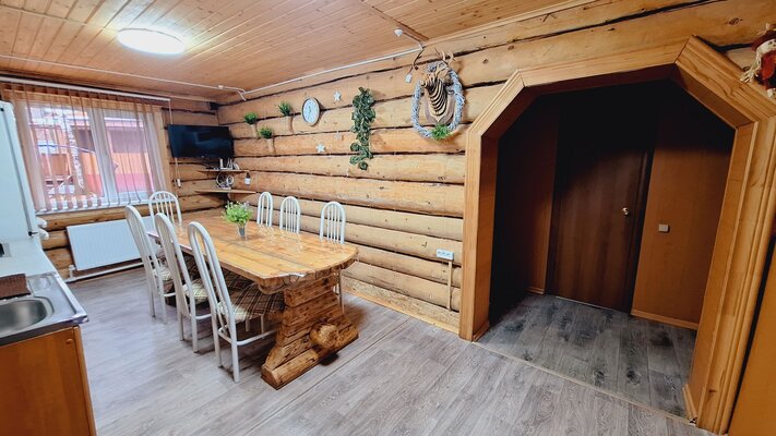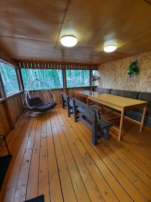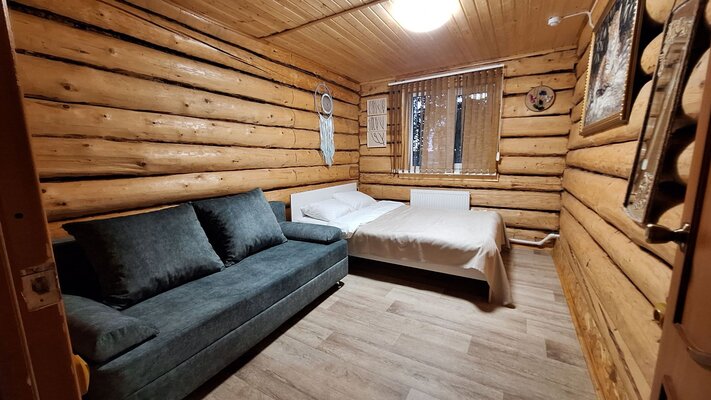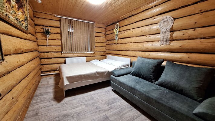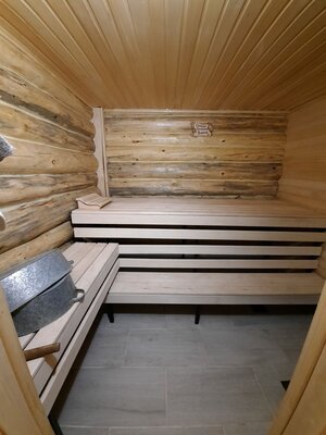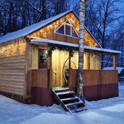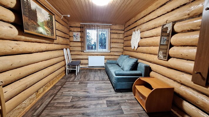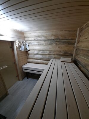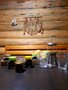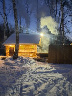 К услугам гостей просторная баня из сосновых бревен. Вмещает до 8 человек и топится дровами. Комната отдыха оснащена теплыми полами. Предусмотрены отдельная моечная с душевой, парная и санузел, что позволяет арендовать баню без проживания в домах.