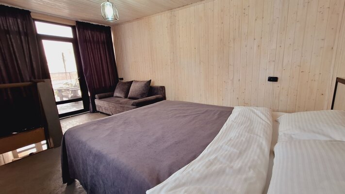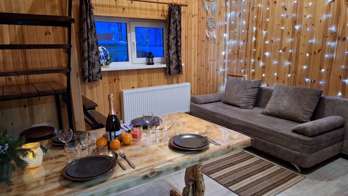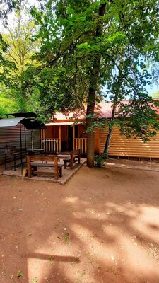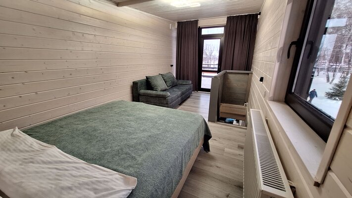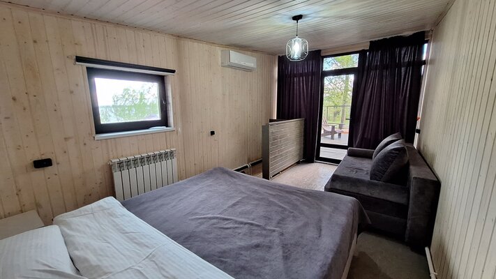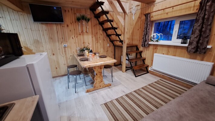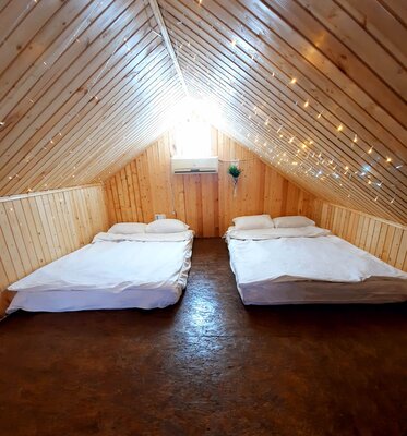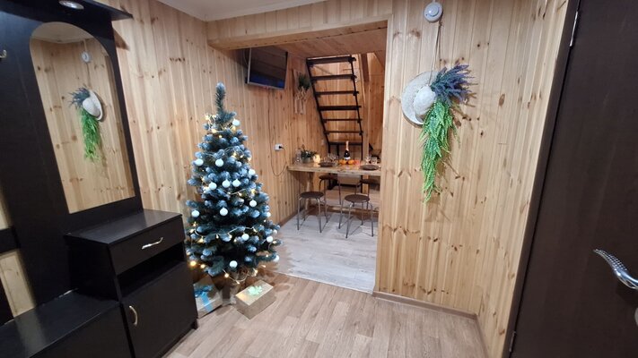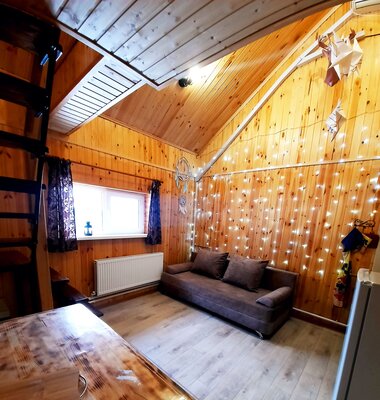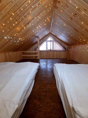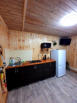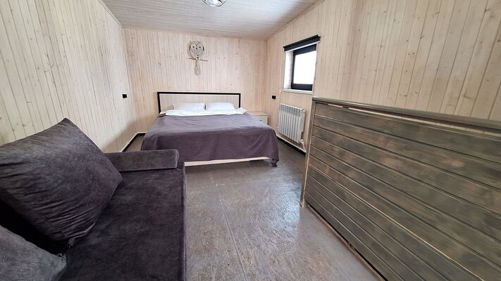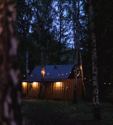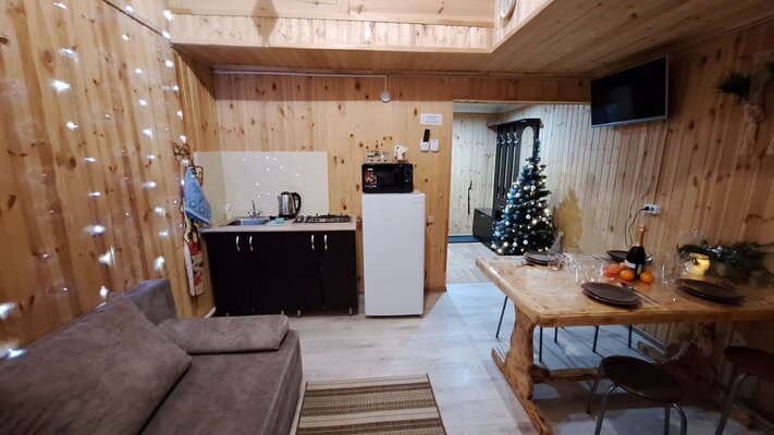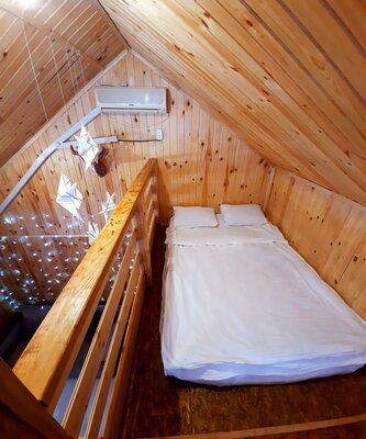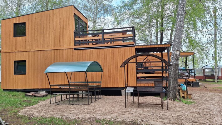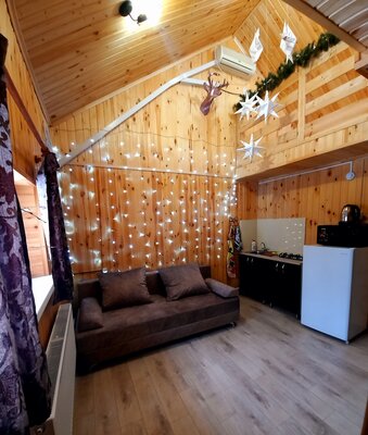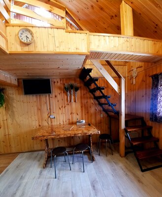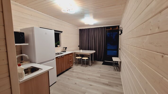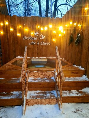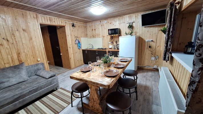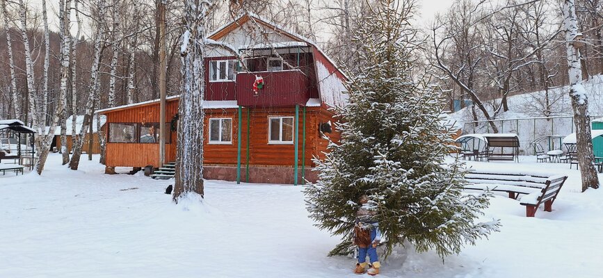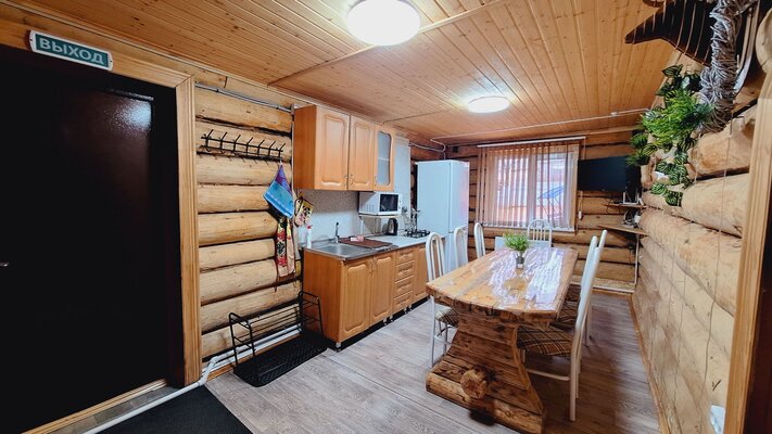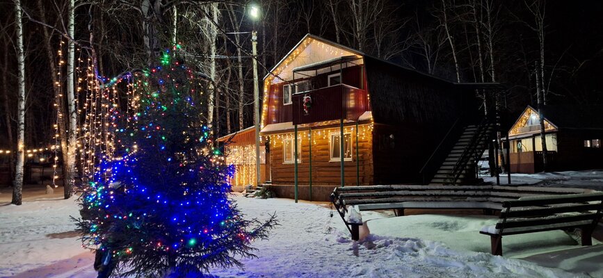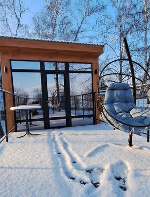 К вашим услугам 5 отапливаемых домов с уютными террасами/беседками и мангальными зонами. В каждом доме: отопление, горячая и холодная артезианская вода, душ, санузел, фен, постельное белье, полностью оборудованная кухня (плита, холодильник, микроволновка, чайник, посуда), телевизор и кондиционер. Две бани на дровах и два сибирских чана под открытым небом доступны круглый год.
