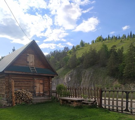 На базе доступно несколько уютных домиков с разной вместимостью, из которых открываются завораживающие виды высоких отвесных скал Башкирии и векового леса, находящегося поблизости.
