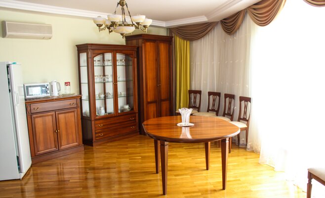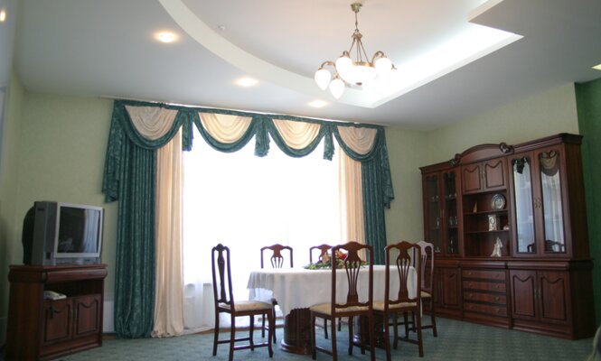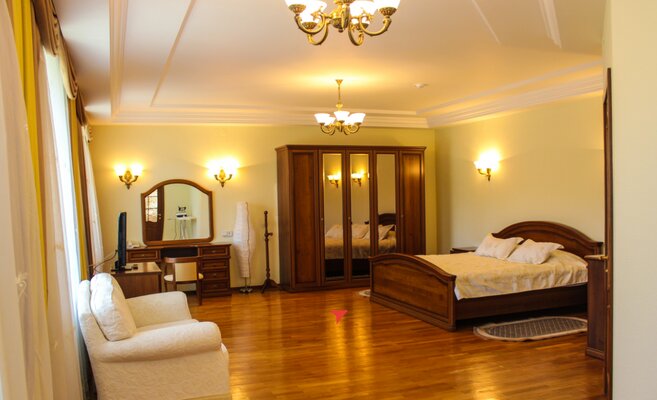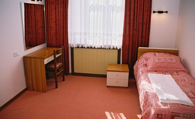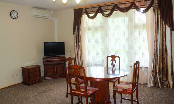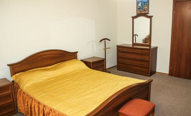 К услугам гостей несколько комфортабельных трехэтажных корпусов, расположенных на благоустроенной территории. В корпусе №6 и лечебном здании есть лифт. Санаторий может принять до 300 человек одновременно, предлагая номера на любой вкус и бюджет: от экономичных с общими удобствами до просторных апартаментов с камином и бильярдом. Все номера оснащены современными ЖК-телевизорами и электрочайниками с набором посуды.