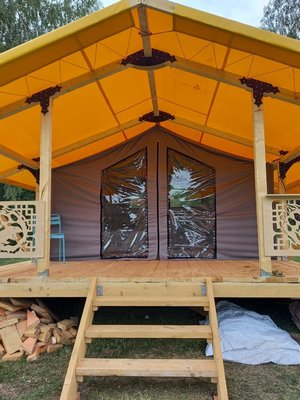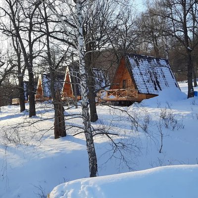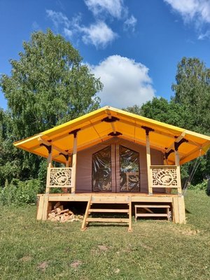 Для проживания доступны сафари-тенты и в А-фрейм-дома, расположенных под вековыми дубами. Вы также можете разместиться в собственных палатках на оборудованных площадках с костровищем, мангалом, столом и скамейками.