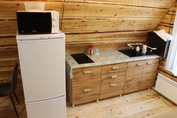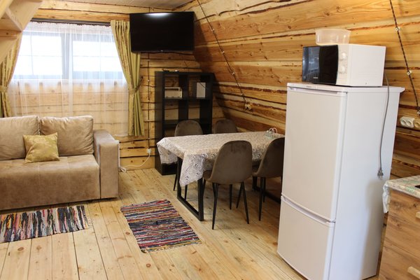 На живописном берегу реки расположилась сауна с чаном — идеальное место для восстановления сил и полного расслабления. Сауна вмещает до шести человек, что удобно для дружеских встреч и семейных посиделок.