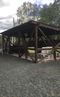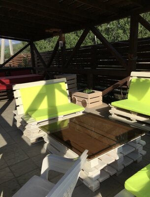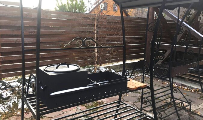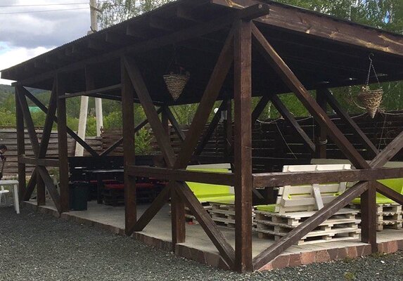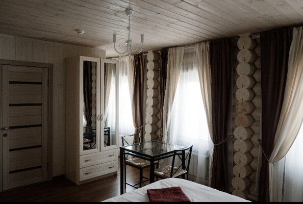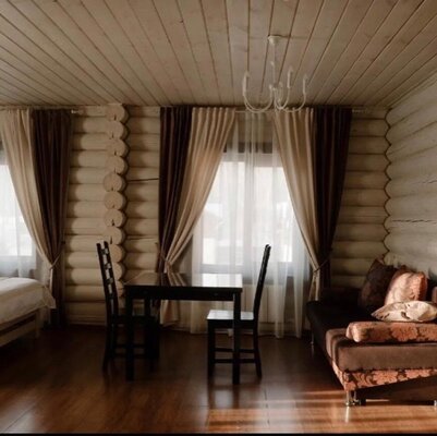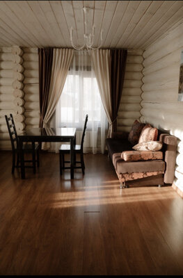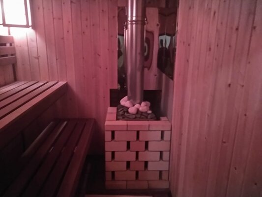 Баня с печью на дровах. В бане большая чайная комната, туалет.