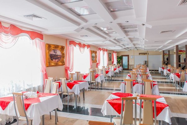 Отдыхающие принимают пищу в столовом зале, рассчитанном на 200 персон. Основная часть рациона разрабатывается с учетом пожеланий отдыхающих.