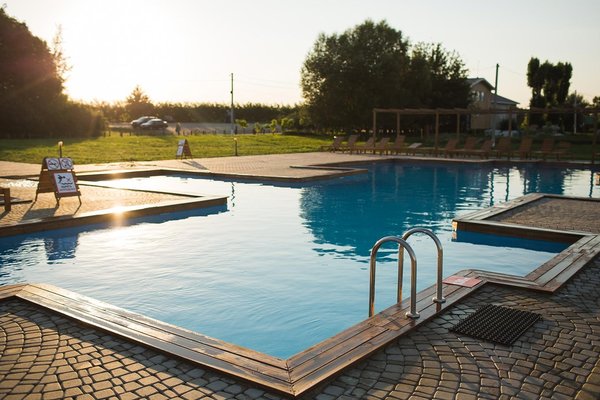 На территории базы отдыха расположены четыре бассейна, зона у бассейнов оборудована всем необходимым: раздевалки, душевые, шезлонги, матрасы и краны для ног.