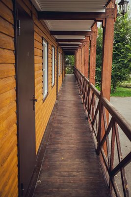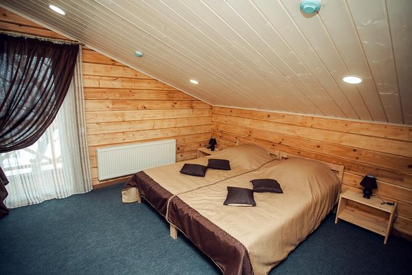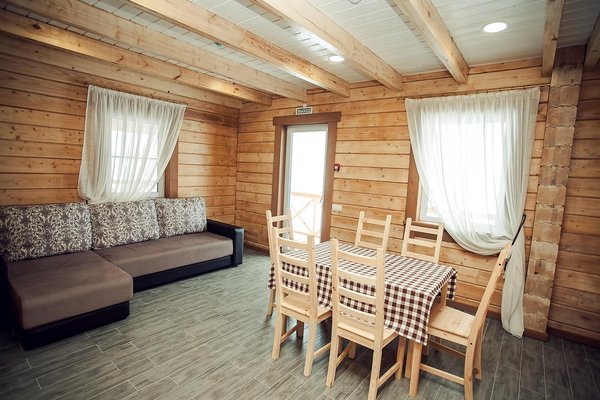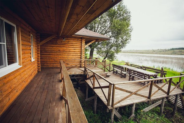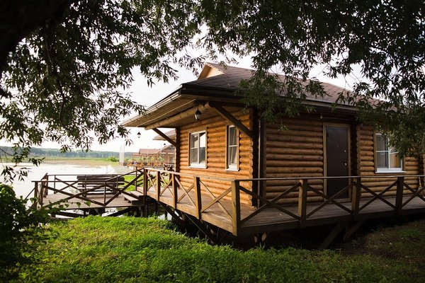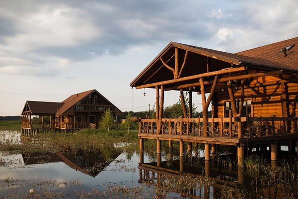 - размещение для 4-х человек в комфортабельных деревянных коттеджах с прекрасным видом на пруд;