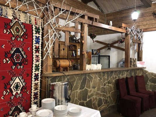 Ресторан с русской и сербской кухнями рассчитан на комфортное размещение 70 гостей. Проведение торжеств, свадеб, банкетов от 2000 рублей с человека.