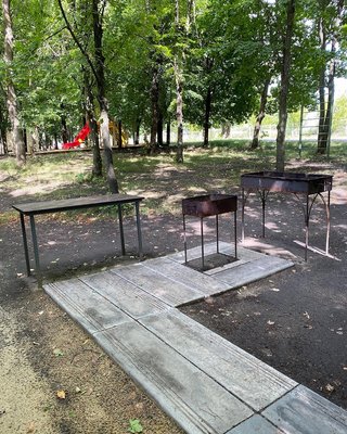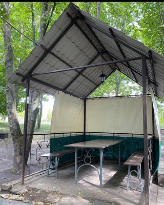 Мангальная зона + площадка для проведение выздной церемонии/ дискотеки/ разных форматов активностей/ фотозоны. В беседке есть свет и розетки. Свой выход к реке и волейбольной площадке.