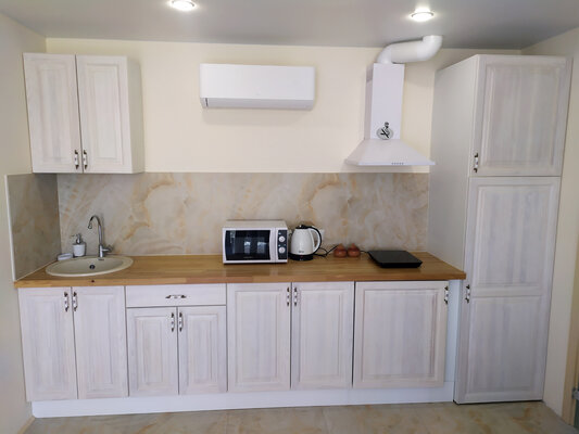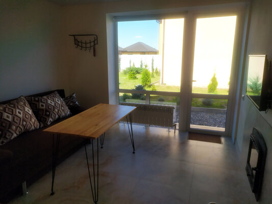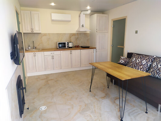 К вашим услугам гостиная с двуспальным раскладным диваном (165 х 200), кондиционером,Smart TV, Wi-Fi.