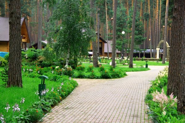 территория небольшая, но довольно ухоженная с признаками развития. вокруг сосновый лес, можно до реки прогуляться. есть боулинг и бассейн с хамамом. рекомендую записываться заранее, бывает аншлаг.