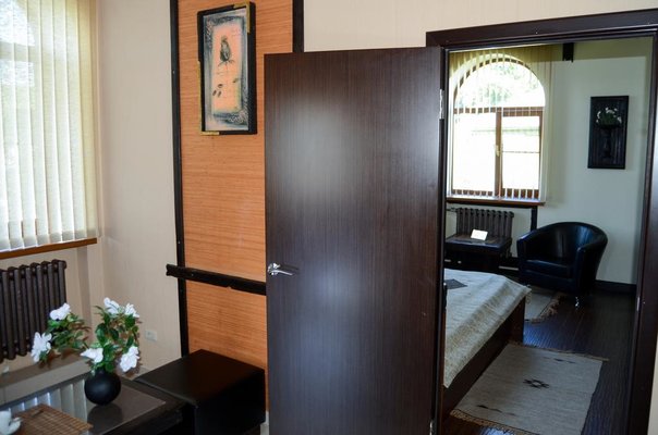 Гостевой дом расположен на закрытой территории, имеется своя стоянка во внутреннем дворе. Предоставляются отдельные корпуса с прилежащими ухоженными двориками с обильными цветниками, обеденными уголками и мангалом. К услугам гостей бильярд, сауна с бассейном и тренажёрный зал.
