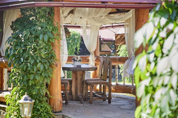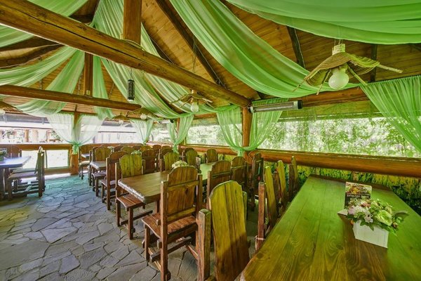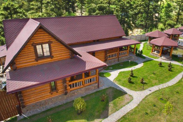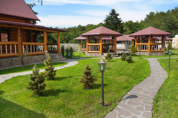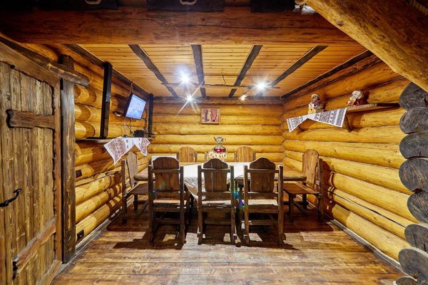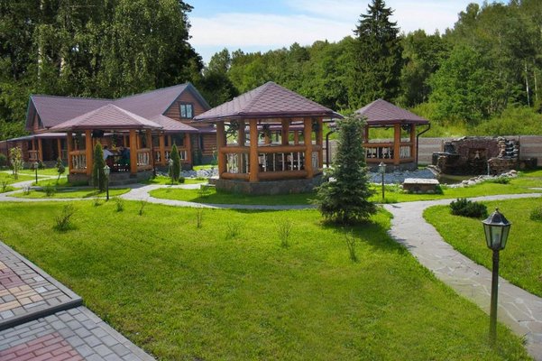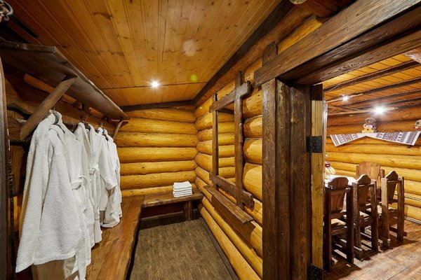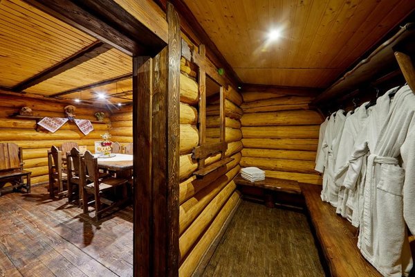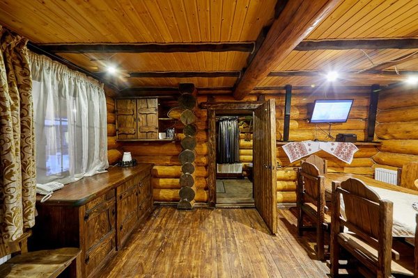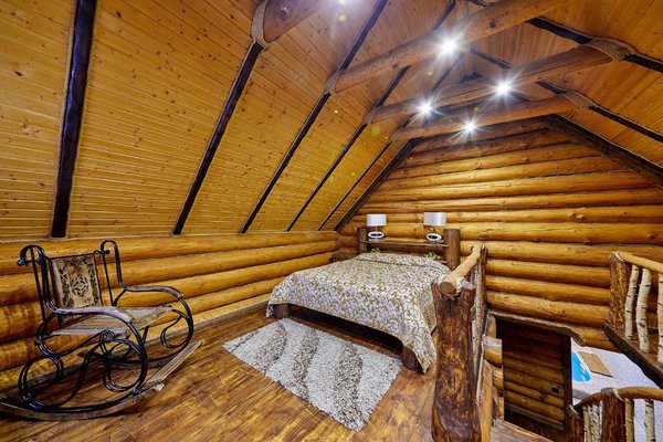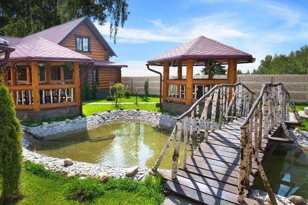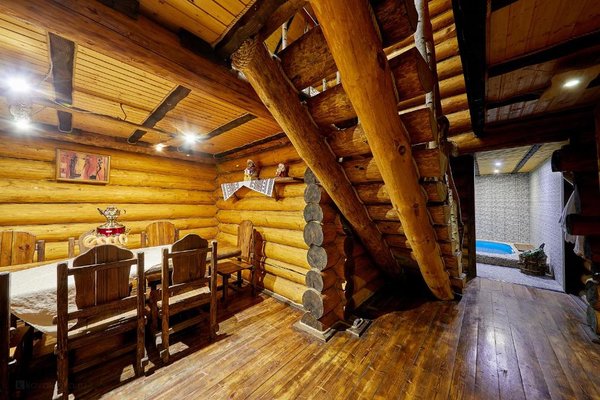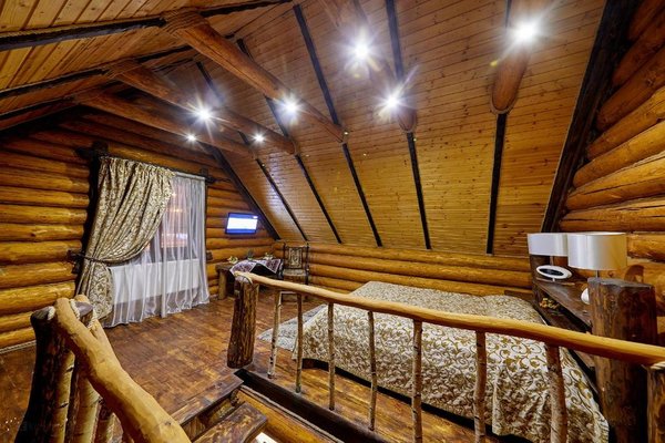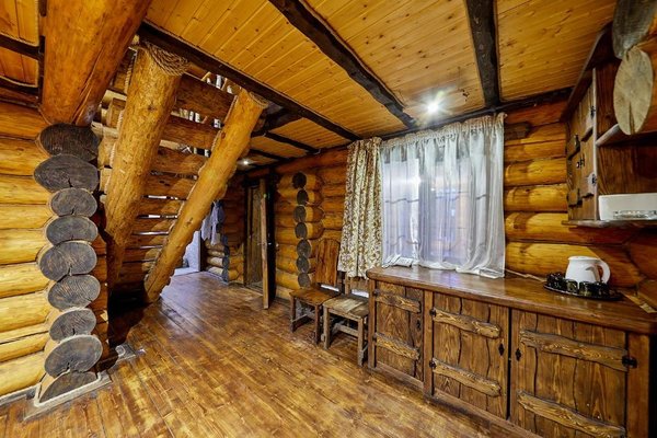 Также для гостей предлагаются 2 двухэтажных гостевых дома, каждый из которых имеет персональную сауну, бассейн, комнаты отдыха и столовой. Все дома выполнены из сруба ручной рубки и имеют эксклюзивный дизайн.
