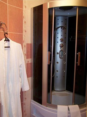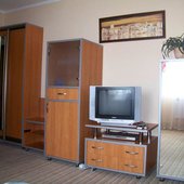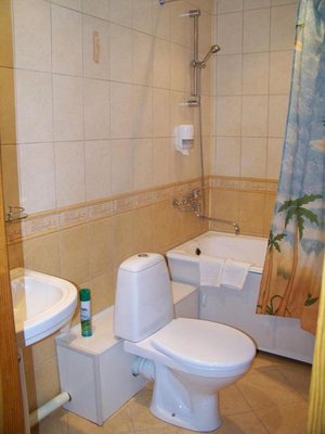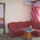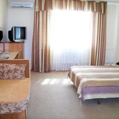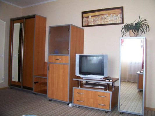 Номер в гостинице «Круиз» оснащен всем необходимым − полный набор мебели, техники, санузел. Гостям «люкса» также предложена посуда, набор предметов личной гигиены, халат и тапочки.