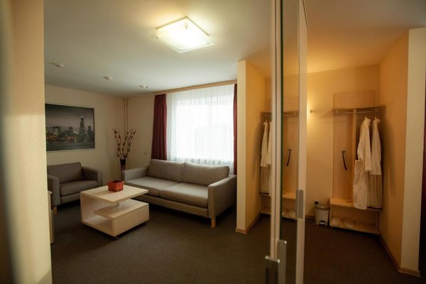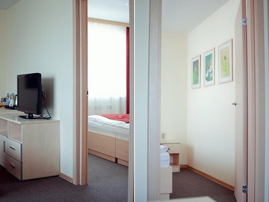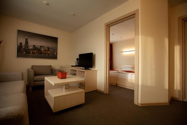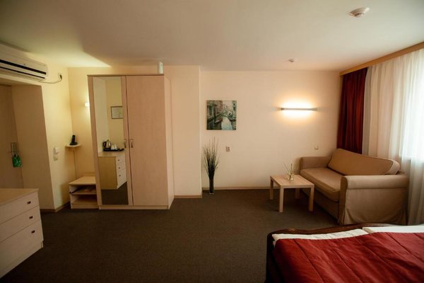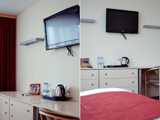 Все номера оборудованы телевизором, кондиционером, холодильником, мини-бар, а также собственной ванной комнатой с феном и бесплатными туалетно-косметическими принадлежностями.