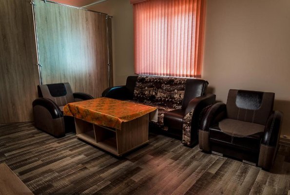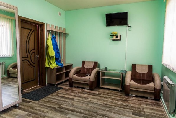 В каждой комнате отдельная обеденная зона, одноместные и двухместные кровати, телевизор с кабельным телевидением, бесплатный Wi-Fi, куллер с водой, шкаф, тумбочка, столик, кресла.