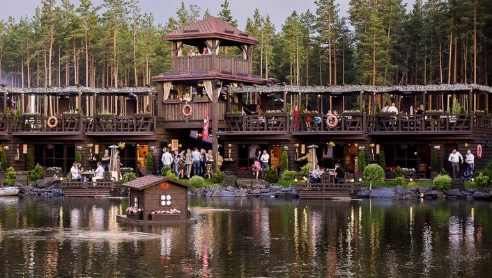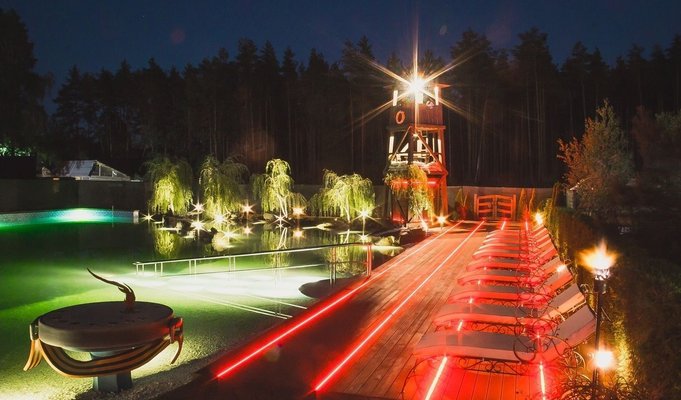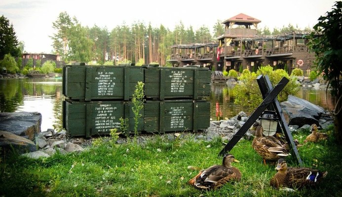 Отдыхали в этом чудном месте с семьей на день Рождения. Заказывали заранее штаб для посиделок. Я была там впервые и признаться в приятном восторге. Заведение находится в 10км от Брянска рядом с мемориальным комплексом Партизанская Поляна. С самой парковки здесь все продумано: шикарная вывеска, красивые ворота и забор, необычные "котелки" в которых по темноте разжигают костры вместо фонарей, персонал...