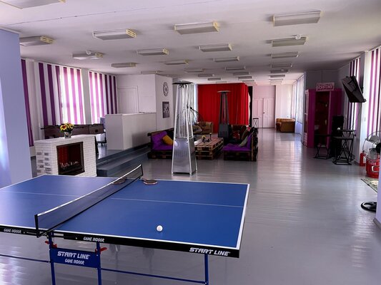Отдыхающие могут насладиться увлекательной игровой комнатой, оборудованной для активного времяпровождения. Здесь есть все для веселых соревновательных моментов: настольный теннис, футбол, аэрохоккей и настольные игры, а также уютная зона для игры в мафию.